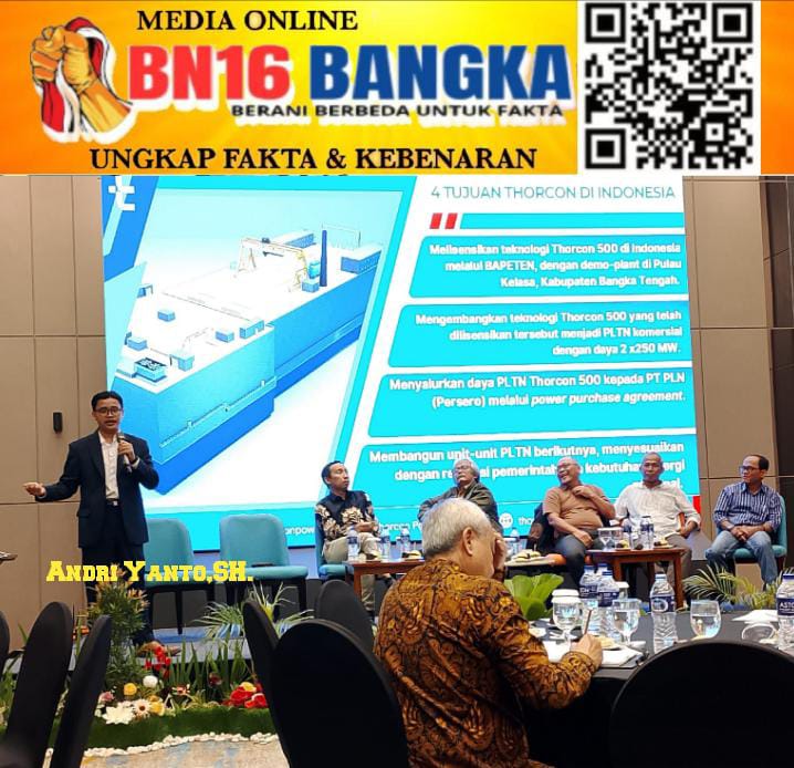 *Pangkalpinang* — Rencana pemanfaatan energi nuklir di Bangka Belitung kembali menjadi sorotan publik. Dalam Diskusi Publik bertajuk *“Memahami Rencana PLTN di Bangka Belitung; Diskusi Data dan Fakta”* yang digelar di Aston Emidary Bangka Hotel dan Conference Center, Sabtu (7/2/2026), PT Thorcon Power Indonesia menegaskan bahwa fokus utama mereka bukanlah membangun Pembangkit Listrik Tenaga Nuklir (PLTN) komersial, melainkan melisensikan dan mengembangkan teknologi nuklir di Indonesia.