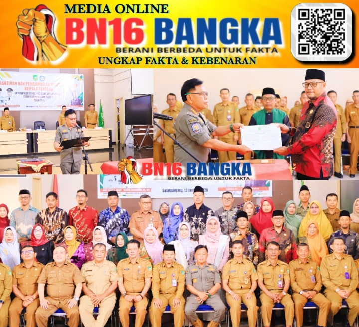 Selatpanjang-Riau, BN16-Bangka.com – Bupati Kepulauan Meranti, AKBP (Purn) H. Asmar, secara resmi melantik dan mengambil sumpah jabatan Kepala Sekolah definitif di seluruh kecamatan se-Kabupaten Kepulauan Meranti. Kegiatan tersebut berlangsung di Aula Gedung Kuning, Selasa (13/1/2026).