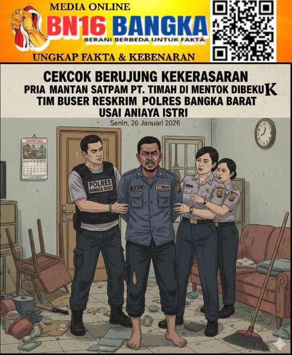 MENTOK, POLRES BABAR – Satuan Reserse Kriminal (Satreskrim) Polres Bangka Barat mengamankan seorang pria berinisial SS alias SG (34), warga Tanjung Sawah, Kelurahan Tanjung, Kecamatan Mentok, atas dugaan tindak pidana Kekerasan Dalam Rumah Tangga (KDRT).