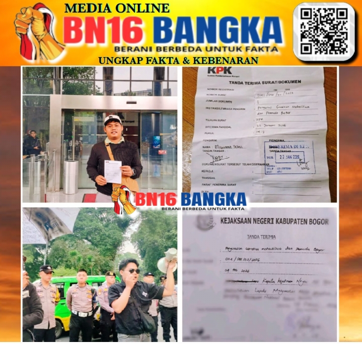 Bogor, BN16-Bangka.com – GMPB secara resmi telah melaporkan dugaan tindak pidana korupsi yang terjadi pada Dinas Pendidikan kepada sejumlah aparat penegak hukum, yakni Polda Jabar, KPK RI, dan Kejari Kabupaten Bogor.