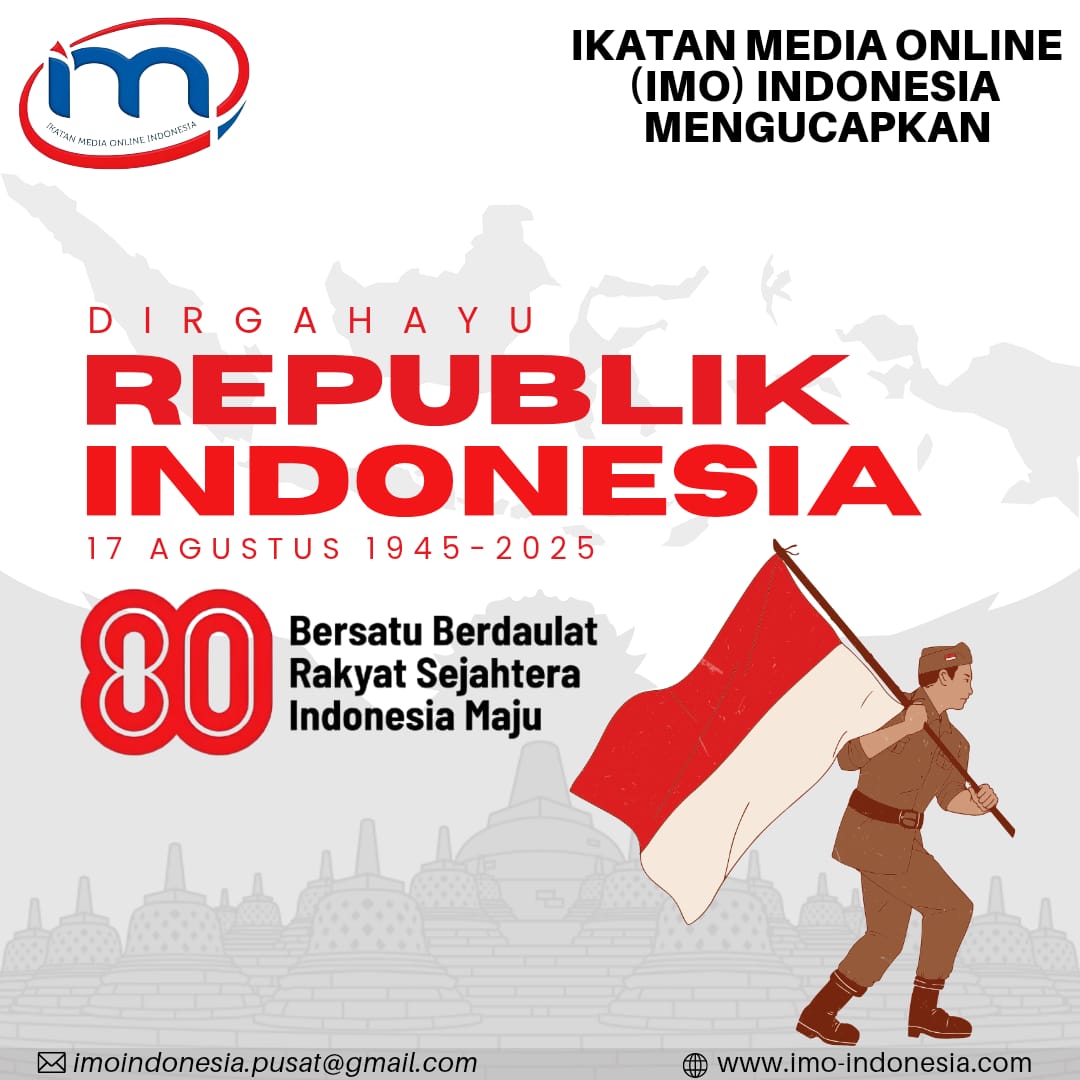 Jakarta – Ikatan Media Online (IMO) Indonesia menyampaikan ucapan selamat atas peringatan Hari Ulang Tahun (HUT) ke-80 Kemerdekaan Republik Indonesia yang jatuh pada 17 Agustus 2025. Dengan tema penuh semangat, “Bersatu Berdaulat, Rakyat Sejahtera, Indonesia Maju”, IMO-Indonesia mengajak seluruh masyarakat untuk menjadikan momentum ini sebagai refleksi perjalanan panjang bangsa dalam mengisi kemerdekaan.