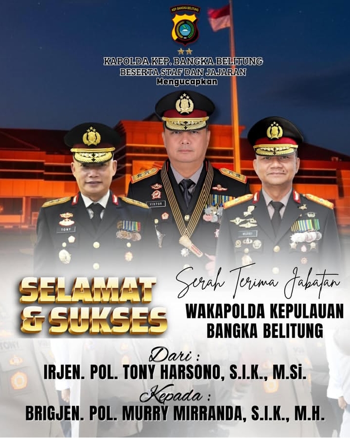 Bangka Belitung, BN16-Bangka.com – Kepolisian Daerah (Polda) Kepulauan Bangka Belitung resmi melaksanakan serah terima jabatan Wakil Kepala Polda (Wakapolda) dari Irjen Pol Tony Harsono kepada Brigjen Pol Murry Mirranda, Senin (12/1/2026).