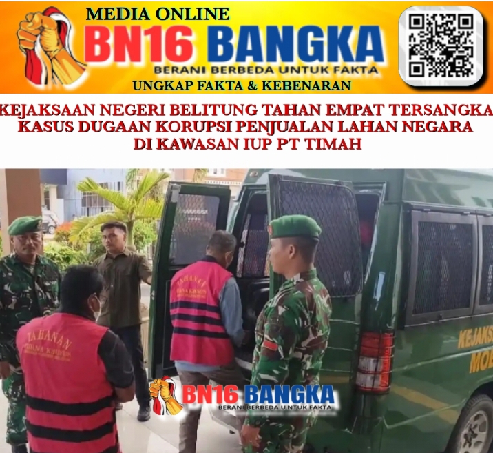 Belitung, BN16-Bangka.com – Kejaksaan Negeri Belitung menahan empat tersangka kasus dugaan korupsi penjualan lahan negara di kawasan IUP PT Timah. Namun, sorotan tajam justru mengarah pada Rudi Hermanto alias “Rudi Ayam” yang hingga kini belum tersentuh hukum. Pantai & Kepulauan