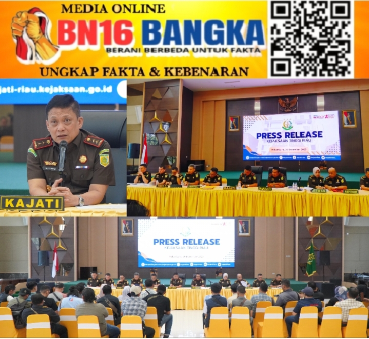 Riau, BN16-Bangka.com – Kejaksaan Tinggi Riau menggelar Press Release Refleksi Akhir Tahun dengan memaparkan capaian kinerja sepanjang tahun 2025, bertempat di Aula Sasana H.M Prasetyo, Gedung Satya Adhi Wicaksana Kejaksaan Tinggi Riau, Kota Pekanbaru, Provinsi Riau. Selasa, (30/12/2025).