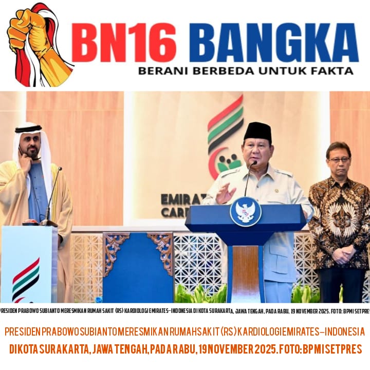 Presiden Republik Indonesia Prabowo Subianto didampingi oleh Wakil Ketua Kantor Kepresidenan Persatuan Emirat Arab (PEA) Bidang Pembangunan dan Syuhada, Paduka Yang Mulia Sheikh Theyab bin Mohamed bin Zayed al Nahyan meresmikan Rumah Sakit (RS) Kardiologi Emirates–Indonesia di Kota Surakarta, Jawa Tengah, pada Rabu, 19 November 2025.