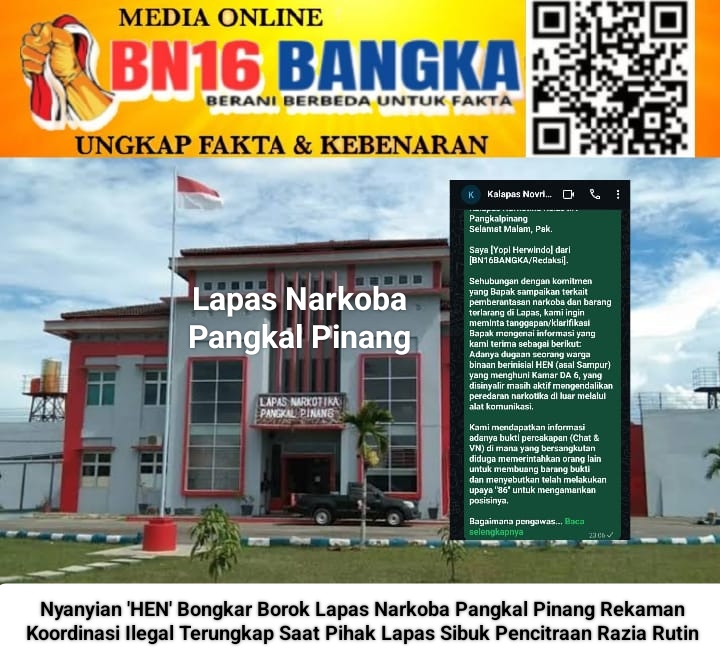 Jika benar Lapas Narkotika Pangkalpinang bersih, mengapa harus ada pemblokiran komunikasi? Dan jika benar pengawasan diperketat, bagaimana instruksi koordinasi ilegal masih bisa beredar bebas dari balik jeruji?