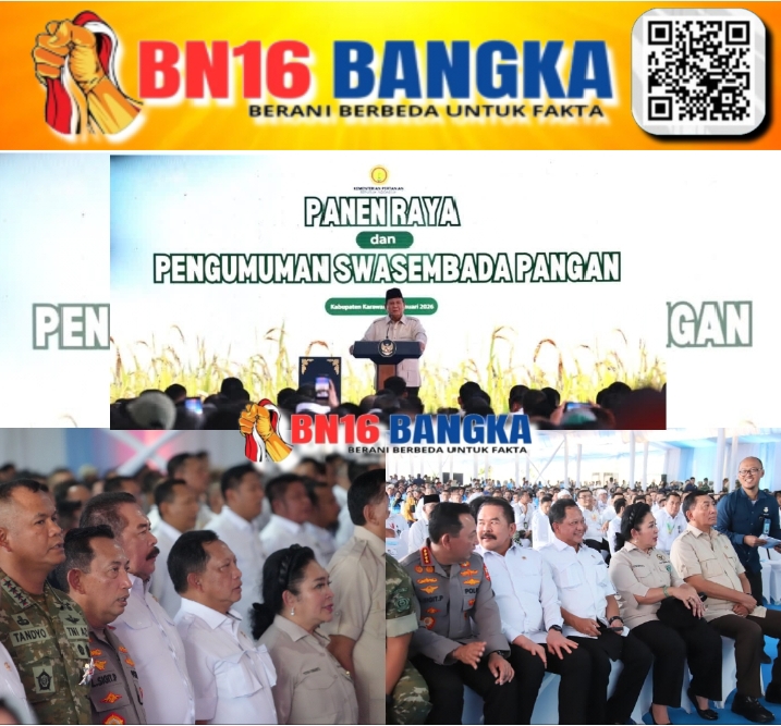 Jawa Barat, BN16-Bangka.com – Menteri Dalam Negeri (Mendagri) Muhammad Tito Karnavian menghadiri Panen Raya dan Pengumuman Swasembada Pangan yang berlangsung di Halaman Kantor Kecamatan Cilebar, Kabupaten Karawang, Jawa Barat, Rabu (7/1/2026). Kegiatan ini dihadiri langsung oleh Presiden Prabowo Subianto.