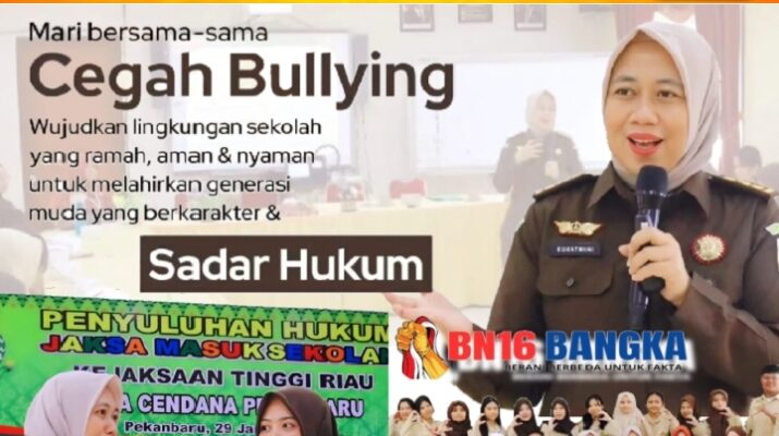 Pekanbaru, BN16-Bangka.com – Tim Penkum Kejati Riau kembali melanjutkan kegiatan JMS (Jaksa Menyapa Siswa) dengan mengangkat tema “Pengaruh dan Dampak Bullying bagi Generasi Muda”