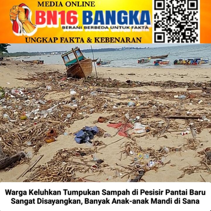 MENTOK,BN16BANGKA– Keindahan pesisir Pantai Baru di Kelurahan Tanjung, Kecamatan Mentok, Kabupaten Bangka Barat, kini tengah terancam. Berdasarkan pantauan pada Rabu (15/4/2026), kawasan wisata yang biasanya menjadi destinasi favorit warga ini justru menyuguhkan pemandangan memprihatinkan akibat tumpukan sampah yang menggunung di sepanjang garis pantai.