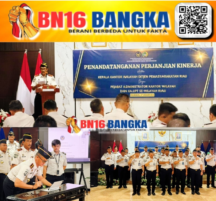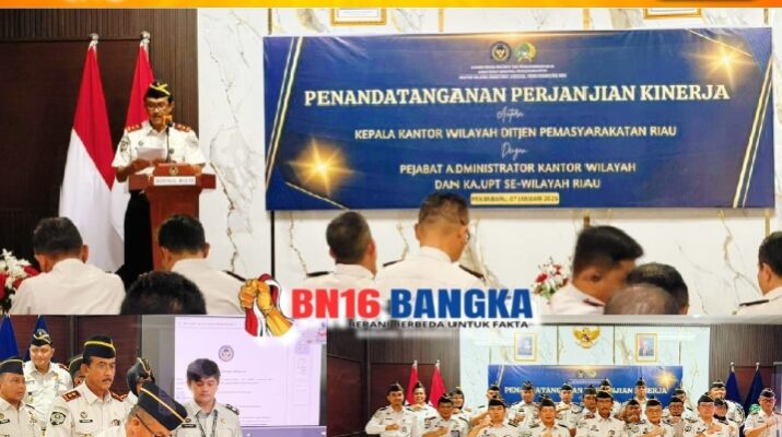 Pekanbaru, BN16-Bangka.com – Mengawali kalender kerja tahun 2026 dengan semangat profesionalisme, Kepala Lembaga Pemasyarakatan (Kalapas) Kelas IIA Pekanbaru, Yuniarto, menghadiri langsung kegiatan Penandatanganan Perjanjian Kinerja dan Komitmen Pelaksanaan Janji Kinerja Tahun 2026. Acara yang berlangsung khidmat ini digelar di Aula Kantor Wilayah (Kanwil) Direktorat Jenderal Pemasyarakatan (Ditjenpas) Riau, Rabu (07/01/2026).