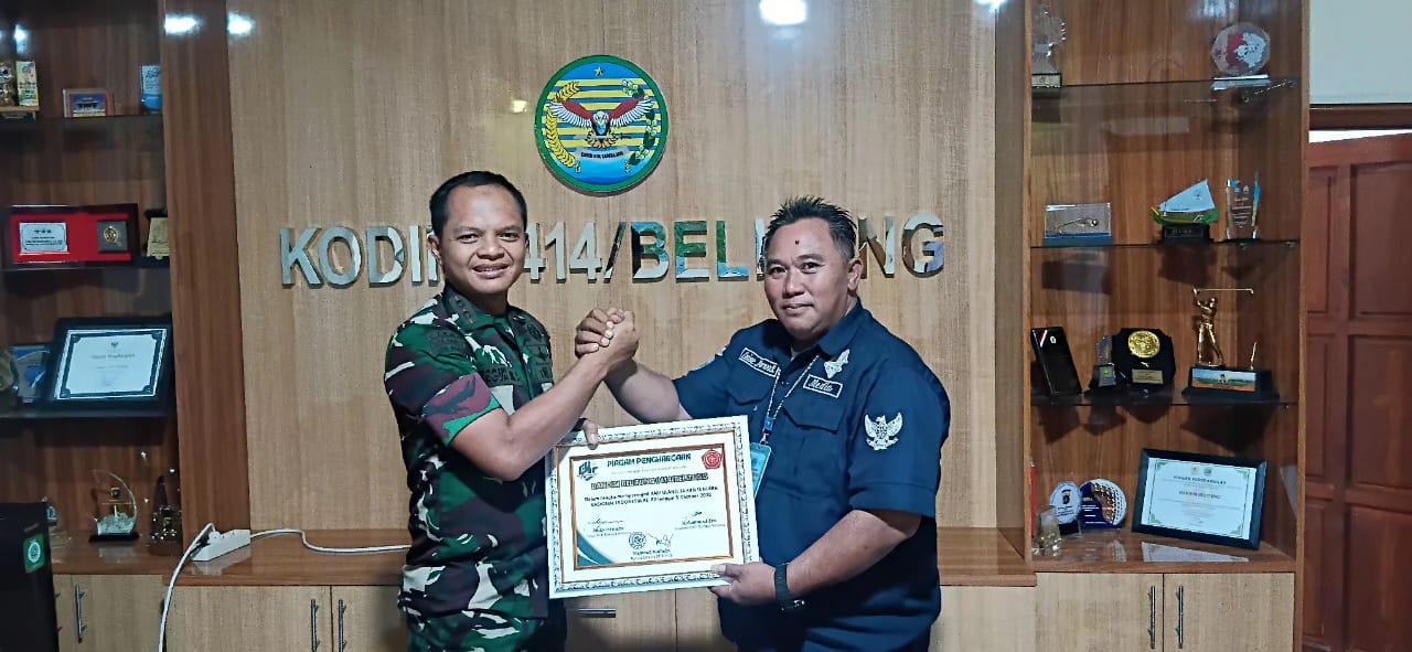 > “Kami melaksanakan amanah Ketua DPD PJS Babel dan Ketua Umum PJS agar menyampaikan piagam penghargaan ini kepada Kodim 0414/Belitung, sebagai bentuk penghargaan atas dedikasi TNI menjaga keutuhan NKRI,” ujar Luise.