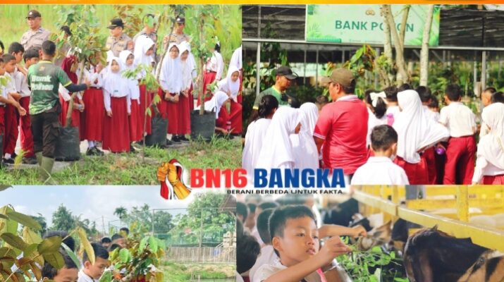 Dipandu Bripda Ardiansyah Harahap, siswa dikenalkan pada beragam jenis tanaman, pembibitan, pengelolaan kolam ikan, hingga peternakan sederhana.