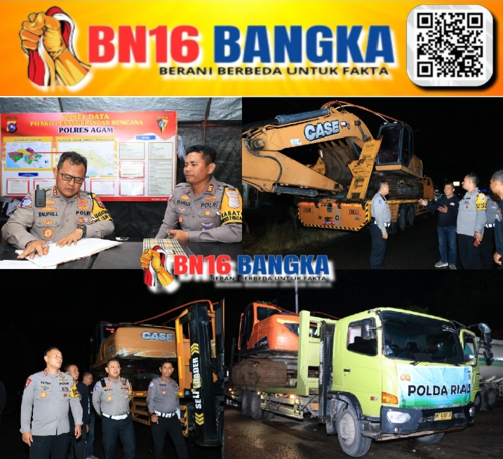 Kabupaten Agam-Sumbar, BN16-Bangka.com – Kepolisian Daerah (Polda) Riau menunjukkan aksi nyata solidaritas antarwilayah dengan mengirimkan kembali bantuan alat berat ke lokasi terdampak bencana banjir di Kecamatan Palembayan, Kabupaten Agam, Sumatera Barat. Bantuan ini diharapkan mempercepat proses rehabilitasi pascabencana.