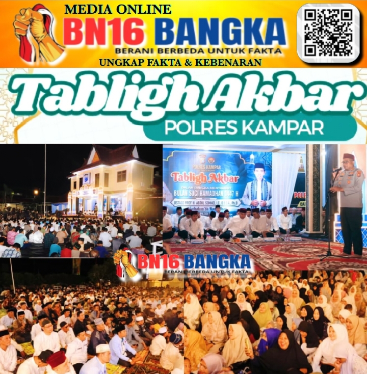 Kampar-Riau, BN16-Bangka.com – Menjelang bulan suci Ramadan, Polres Kampar menggelar tabligh akbar yang menghadirkan Ustaz Abdul Somad atau UAS di Kabupaten Kampar, Riau. Kapolda Riau Irjen Pol Herry Heryawan turut hadir dalam kegiatan tersebut. Kegiatan Tabligh Akbar Polres Kampar Dalam Rangka Menyambut Bulan Suci Ramadan 1447 H di Polres Kampar, Senin (16/2/2026) malam.