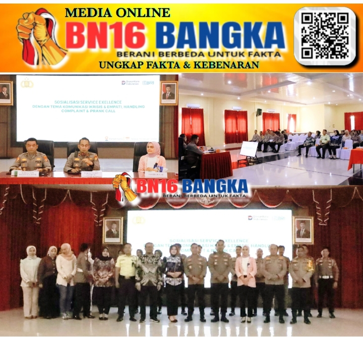 Kampar-Riau, BN16-Bangka.com – Polres Kampar terus berupaya meningkatkan kualitas pelayanan kepada masyarakat. Salah satu upaya yang dilakukan adalah dengan menggelar sosialisasi Service Excellence yang bekerja sama dengan Bank BRI Cabang Bangkinang, Selasa (13/01/2026) di Aula Sanika Satyawada Polres Kampar.