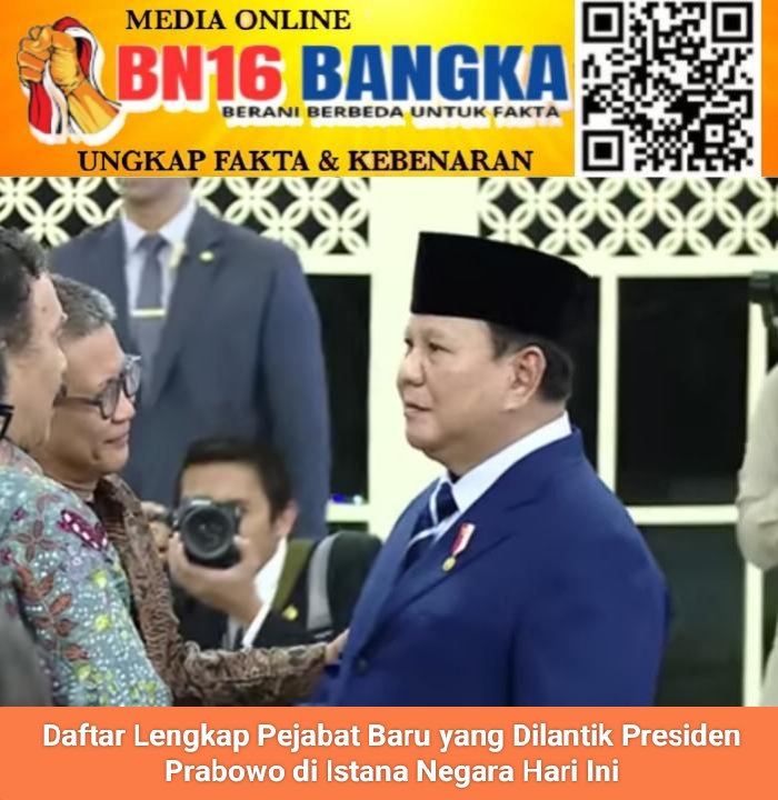 Jakarta, BN16BANGKA—Wakil Presiden (Wapres) Gibran Rakabuming mendampingi Presiden Prabowo Subianto dalam pelantikan sejumlah pejabat negara di Istana Negara, Jakarta, Senin (27/04/2026). Pelantikan ini merupakan bagian dari penguatan struktur pemerintahan dalam mendukung pelaksanaan program strategis nasional.