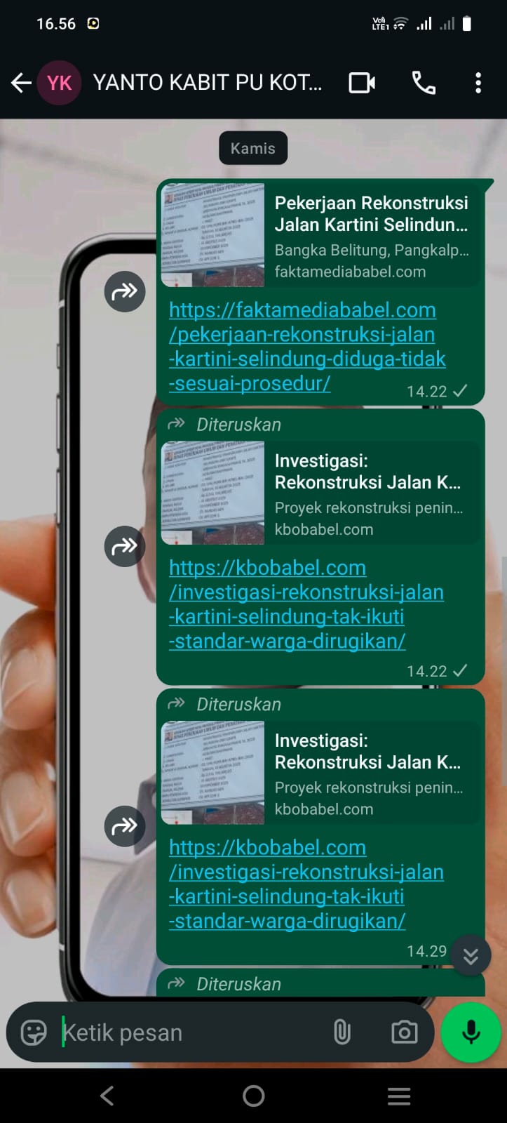 Oleh karena itu, redaksi jejaring media KBO Babel membuka ruang seluas-luasnya bagi pihak terkait, baik kontraktor maupun pejabat dinas, untuk memberikan klarifikasi resmi.