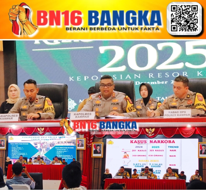 Bangkinang, Riau, BN16-Bangka.com – Sepanjang tahun 2025 berhasil mencatat keberhasilan dalam agenda rilis akhir tahun 2025, pengungkapan kasus tindak kriminalitas menurun dan banyak kasus yang terselesaikan selama tahun 2025 perbandingan dari tahun 2024.