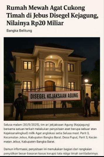 Menurut informasi yang dihimpun, penyegelan rumah Agat hanyalah langkah awal. Kejagung tengah memetakan aliran dana dan aset-aset lain yang diduga berasal dari bisnis timah ilegal.