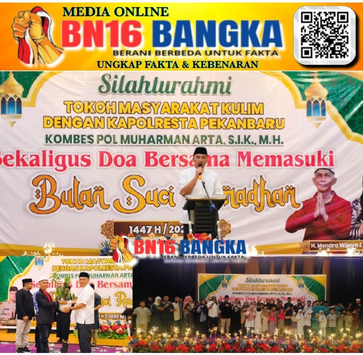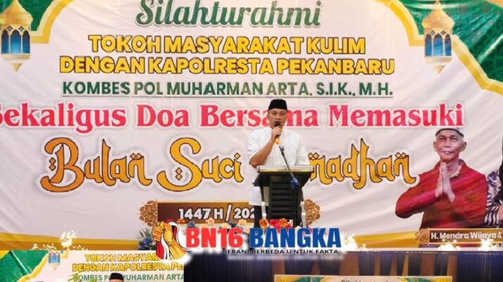 Pekanbaru, BN16-Bangka.com – Kapolresta Pekanbaru, Muharman Arta, menghadiri kegiatan Silaturahmi Tokoh Masyarakat Kecamatan Kulim dan Doa Bersama menyambut Bulan Suci Ramadhan 1447 H di Gedung Balai Tri Wijaya, Kecamatan Kulim, Jumat malam (13/02/2026). Kegiatan ini diinisiasi oleh Kapolsek Kulim, Didi Antoni.