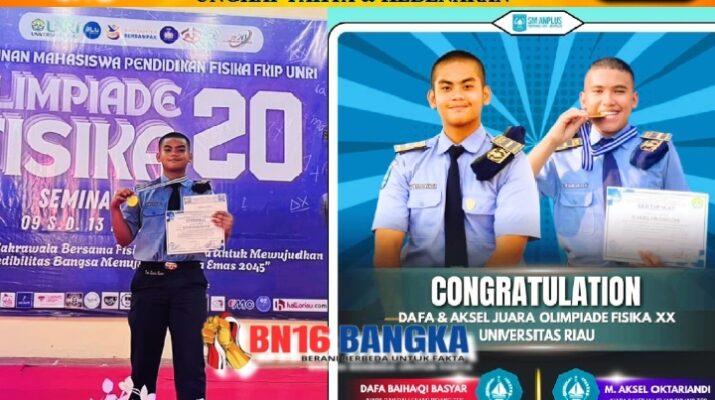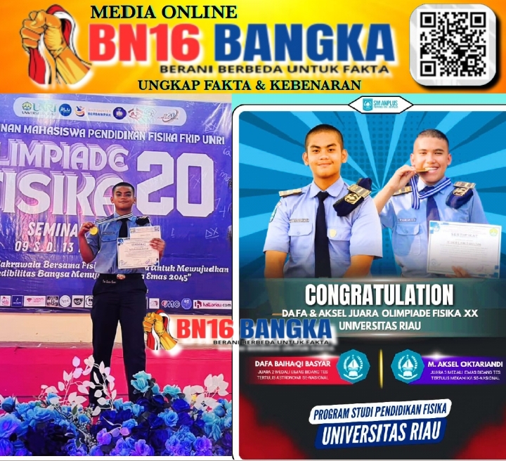 Pekanbaru, BN16-Bangka.com – Dua siswa SMA Negeri Plus Provinsi Riau, Dafa Baihaqi Basyar dan M. Aksel Oktariandi, berhasil meraih prestasi membanggakan di Olimpiade Fisika XX tingkat nasional yang diselenggarakan di Universitas Riau. Sabtu (14/02/2026).