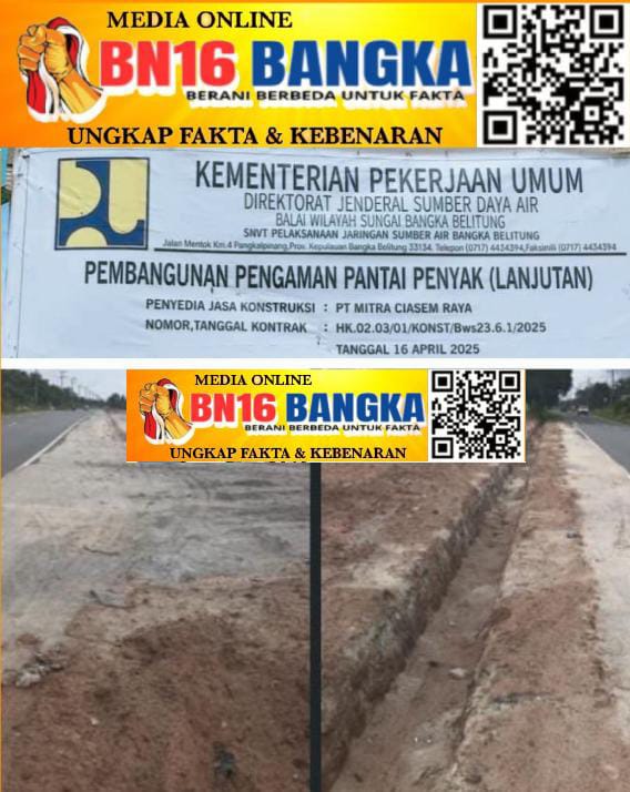 Proyek infrastruktur di kawasan Pantai Penyak, Kabupaten Bangka Tengah, kini berada di titik nadir kepercayaan publik. Investigasi lapangan Redaksi menemukan indikasi kuat kegagalan kualitas pekerjaan: finishing asal jadi, saluran drainase jalan provinsi ditimbun tanah, pasir timbunan tidak dipadatkan, hingga kendaraan berulang kali kandas. Ironisnya, di balik kerusakan fisik itu, mencuat pula dugaan upah pekerja tidak dibayarkan.