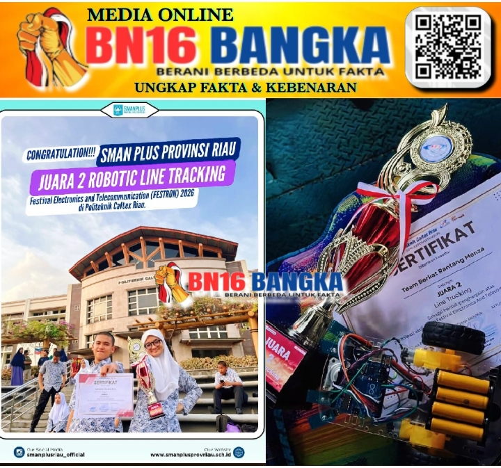 Pekanbaru, BN16-Bangka.com – SMA Negeri Plus Provinsi Riau kembali menorehkan prestasi gemilang di bidang teknologi dan robotika. Dalam ajang FESTRON 2026 yang diselenggarakan pada tanggal 22 Januari 2026, oleh Politeknik Caltex Riau, tim perwakilan SMA Negeri Plus Provinsi Riau berhasil meraih Juara 2 kategori Robotic Line Tracking. Sabtu (24/01/2026).