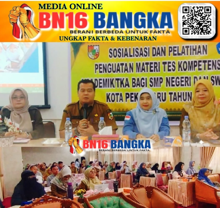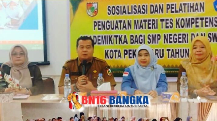 Pekanbaru, sidhiberita.com – Kepala Bidang SMP, Dr. Irpan Maidelis, S.Pd., M.M., didampingi oleh Kasi Kurikulum SMP, membuka kegiatan Sosialisasi dan Pelatihan Penguatan Materi Tes Kompetensi Akademik (TKA) bagi guru Bahasa Indonesia dan Matematika SMP Negeri dan Swasta Kota Pekanbaru. Kegiatan ini dilaksanakan di SMPN 1 Pekanbaru pada Selasa, 20 Januari 2026.