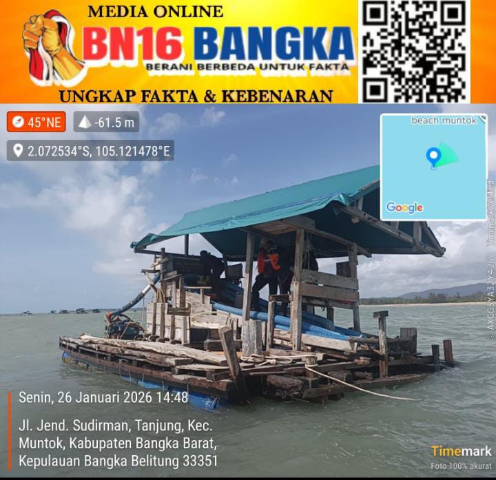 BANGKA BARAT— Polisi kembali melakukan penertiban sebuah aktivitas tambang biji timah di Laut Tembelok, Kecamatan Muntok, Bangka Barat (Babar). Dalam penertiban pada Selasa (27/1/2026) siang, 2 unit PIP jenis selam diamankan oleh kepolisian.